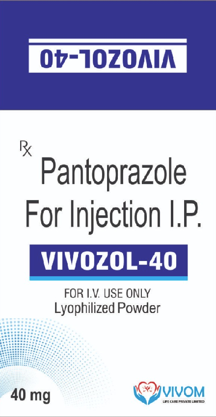 Vivozol-40 Injection contains Pantoprazole Sodium I.P. (Lyophilized) equivalent to 40 mg of Pantoprazole.