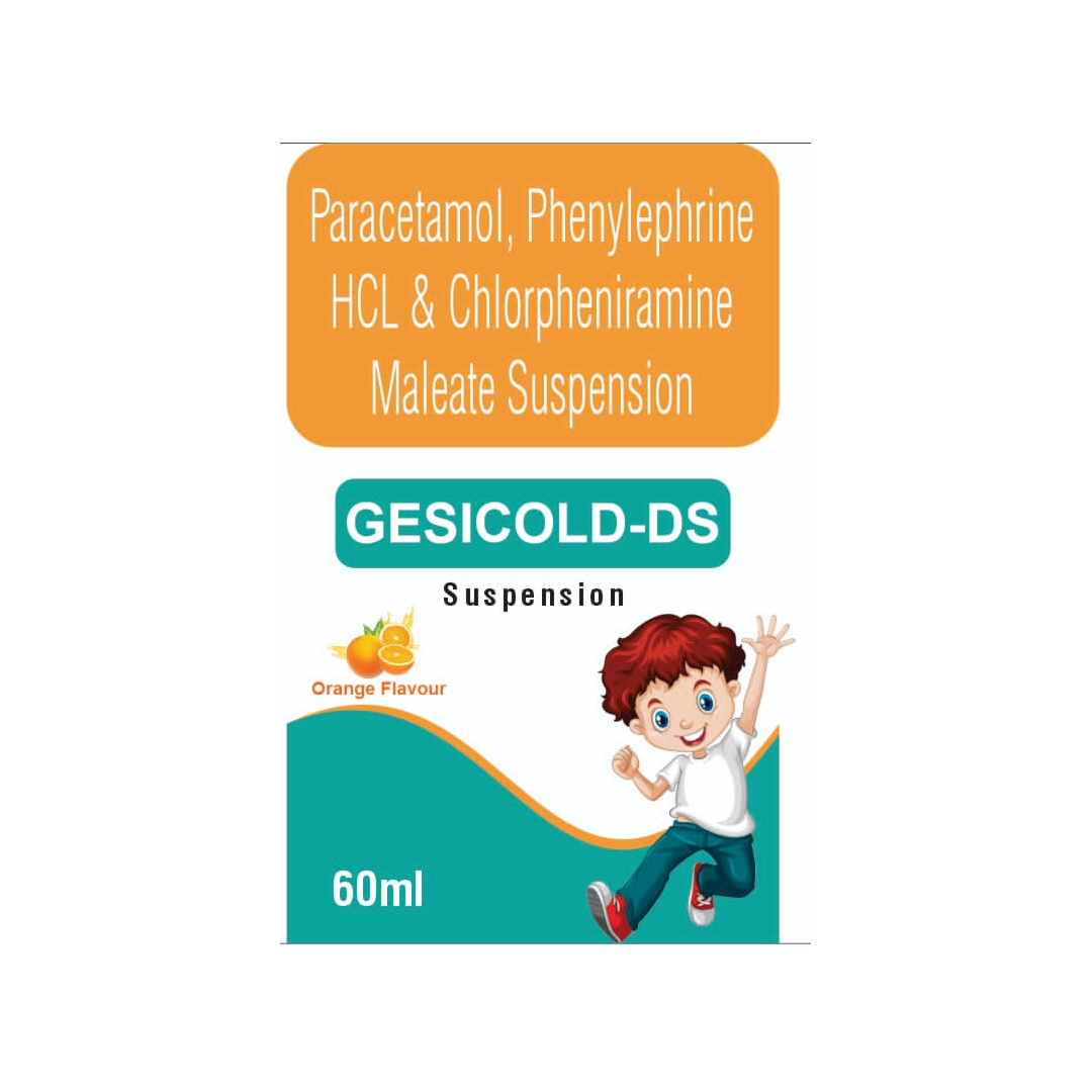 GEXICOLD DS Suspension containing Paracetamol, Phenylephrine HCL, and Chlorpheniramine maleate is a combination medicine used to treat common cold and allergy symptoms like fever, headache, sore throat, runny nose, sneezing, and nasal congestion.